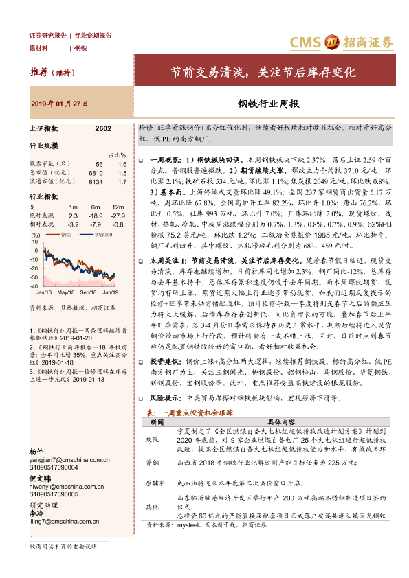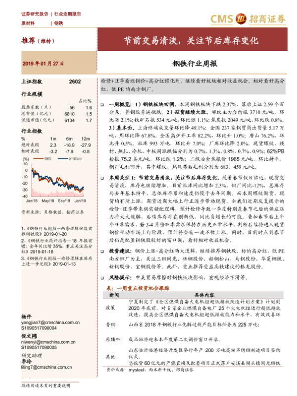【海通证券】【20190127】钢铁行业周报:节前交易清淡,关注节后库存变化-12页