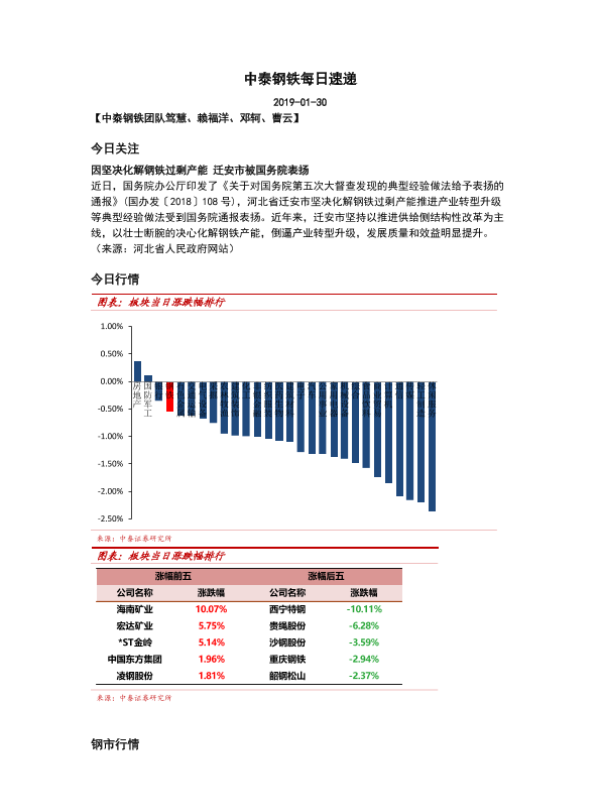 【中泰证券】【20190130】中泰钢铁每日速递-5页