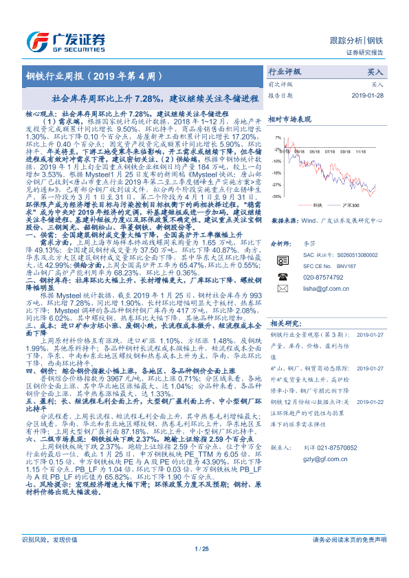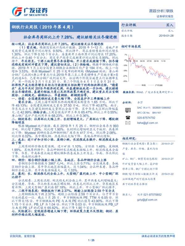 【广发证券】【20190128】20190128-广发证券-钢铁行业周报(2019年第4周):社会库存周环比上升7.28%,建议继续关注冬储进程-25页