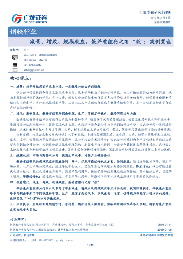 【广发证券】【20190201】钢铁行业:减量、增效、规模效应,兼并重组行之有“效”:案例复盘-38页
