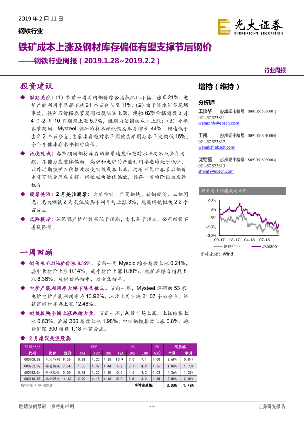 【光大证券】【20190211】光大证券-钢铁行业周报:铁矿成本上涨及钢材库存偏低有望支撑节后钢价-10页