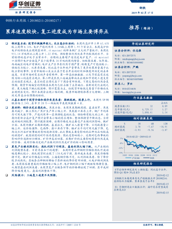 【华创证券】【20190217】20190217-华创证券-钢铁行业周报:累库速度较快,复工进度成为市场主要博弈点-25页
