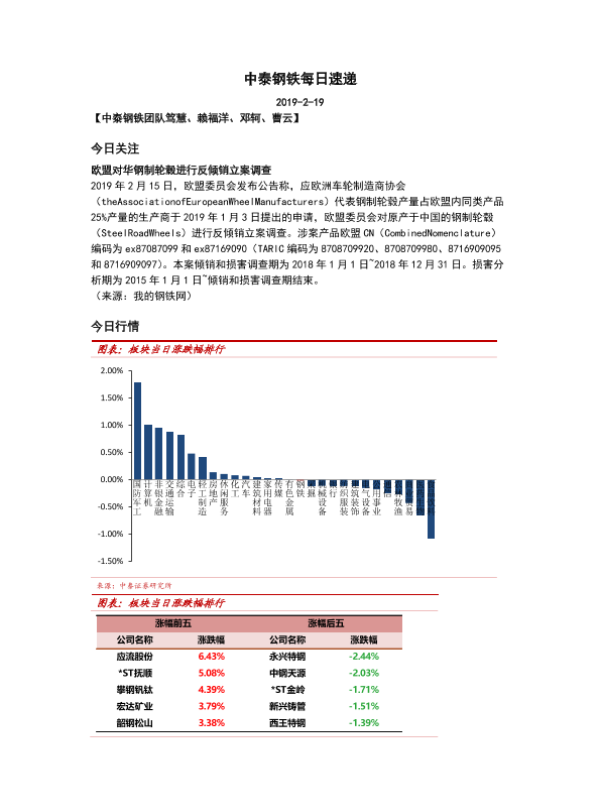 【中泰证券】【20190219】中泰钢铁每日速递-5页
