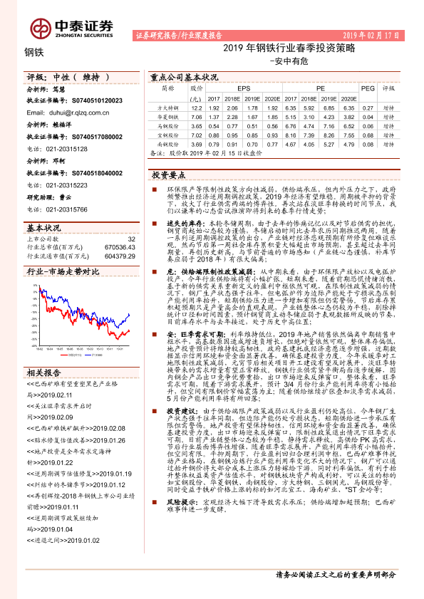 【中泰证券】【20190217】2019年钢铁行业春季投资策略:安中有危-28页