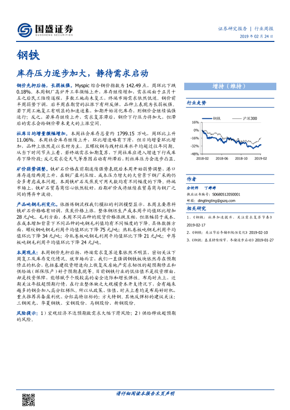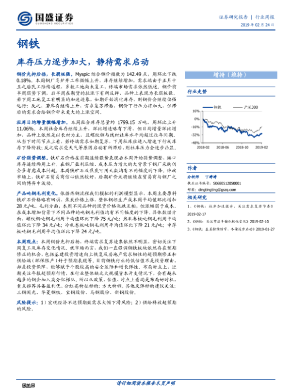 【国盛证券】【20190224】钢铁行业周报:库存压力逐步加大,静待需求启动-10页