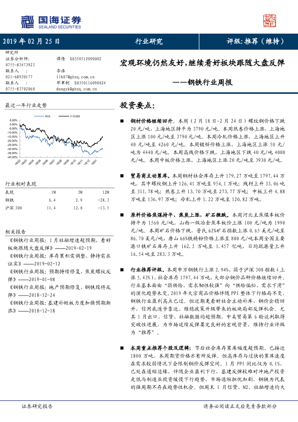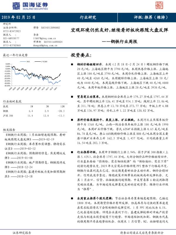 【国海证券】【20190225】20190225-国海证券-钢铁行业周报:宏观环境仍然友好,继续看好板块跟随大盘反弹-14页
