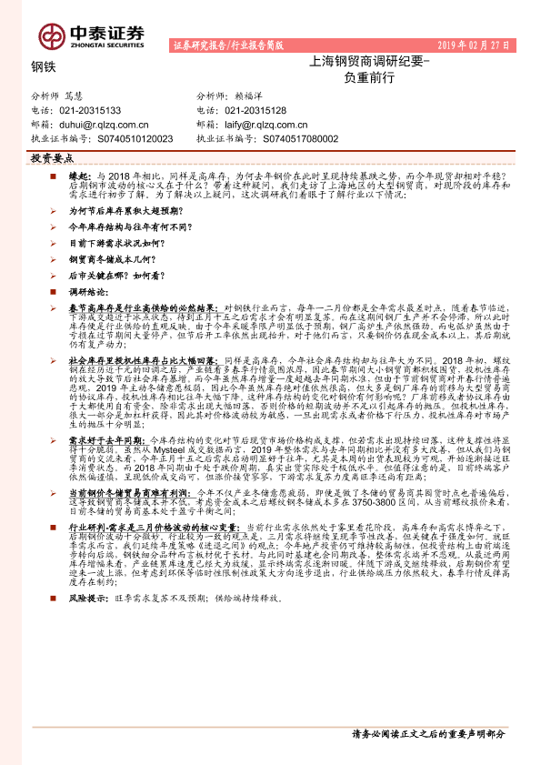 【中泰证券】【20190227】上海钢贸商调研纪要:负重前行-17页