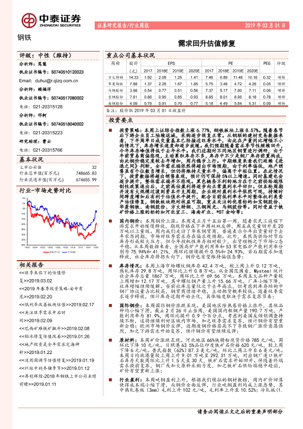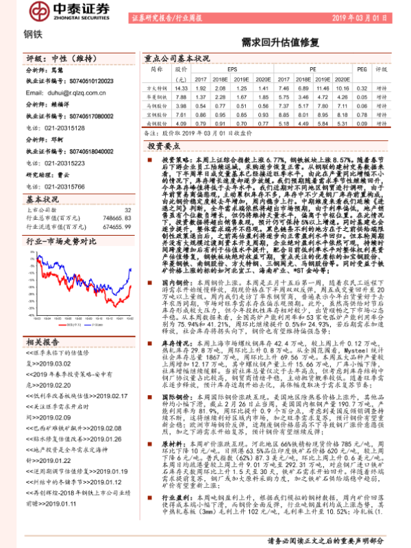 【中泰证券】【20190301】20190301-中泰证券-钢铁行业周报:需求回升估值修复-15页
