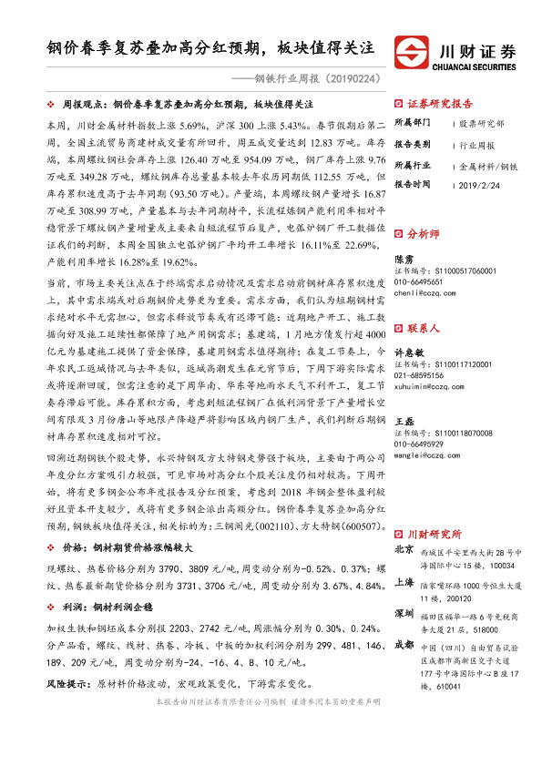 【川财证券】【20190224】20190224-川财证券-钢铁行业周报:钢价春季复苏叠加高分红预期,板块值得关注-23页