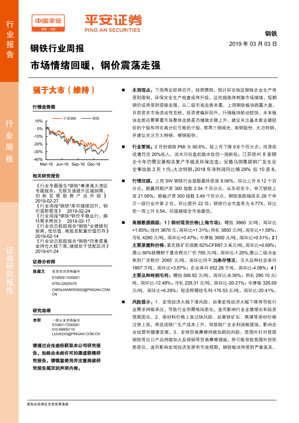 【平安证券】【20190303】钢铁行业周报:市场情绪回暖,钢价震荡走强-5页