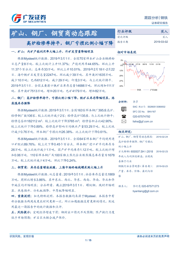 【广发证券】【20190302】矿山、钢厂、钢贸商动态跟踪:高炉检修率持平,钢厂亏损比例小幅下降-15页