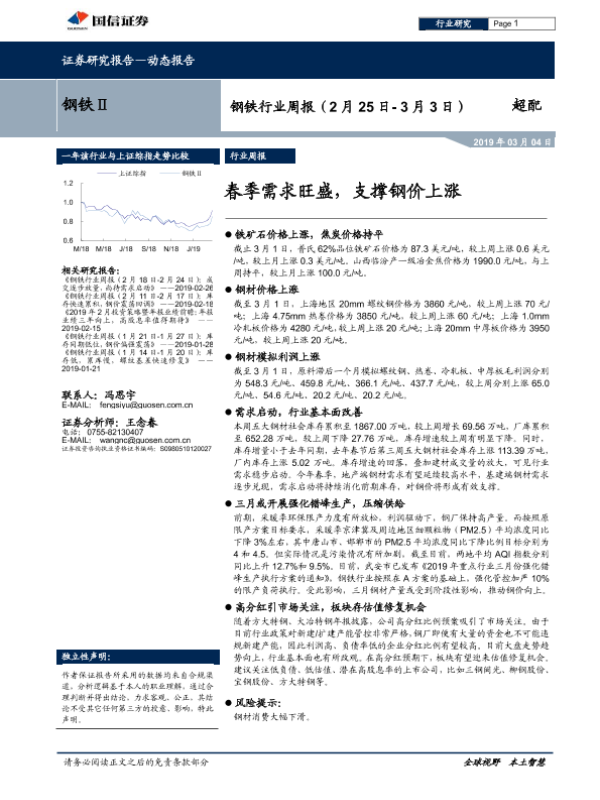 【国信证券】【20190304】20190304-国信证券-钢铁行业周报:春季需求旺盛,支撑钢价上涨-14页