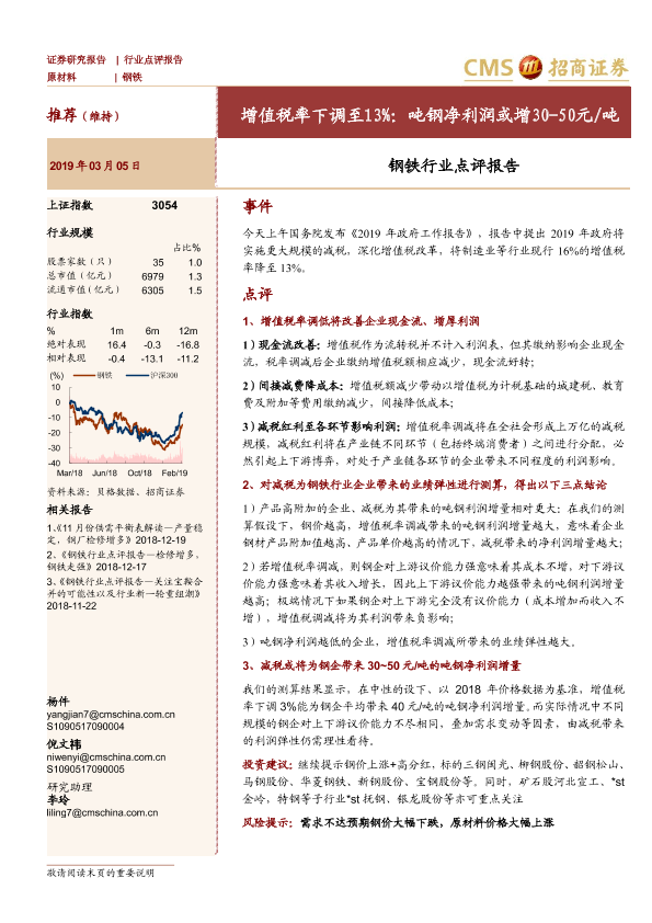 【海通证券】【20190305】增值税率下调至13%:吨钢净利润或增30-50元/吨-3页