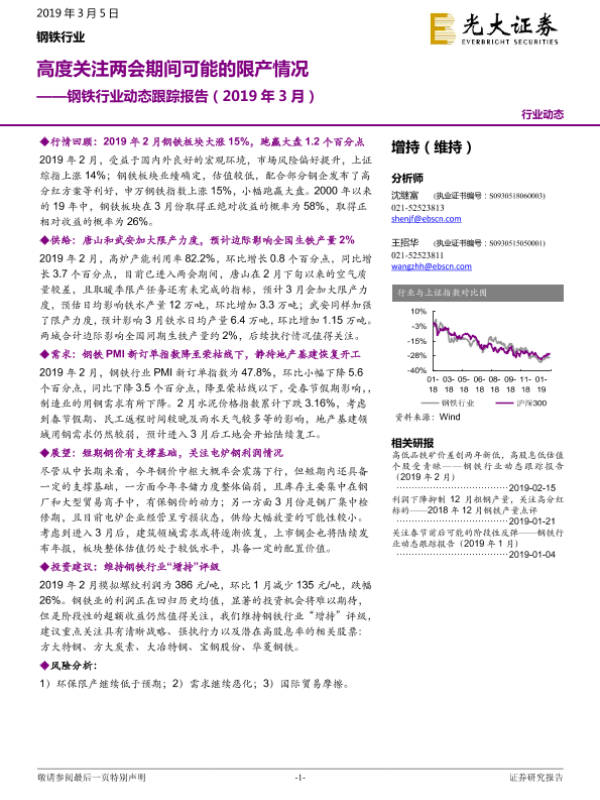 【光大证券】【20190305】20190305-光大证券-钢铁行业动态跟踪报告:高度关注两会期间可能的限产情况-17页