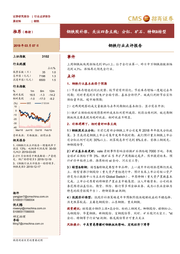 【海通证券】【20190307】钢铁行业点评报告:钢铁股补涨,关注四条主线:分红、矿石、特钢转型-2页
