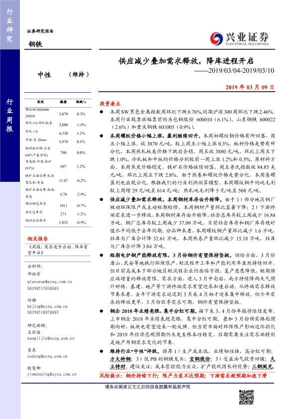 【兴业证券】【20190309】供应减少叠加需求释放,降库进程开启-17页