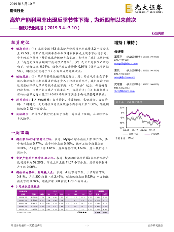 【光大证券】【20190310】20190310-光大证券-钢铁行业周报:高炉产能利用率出现反季节性下降,为近四年以来首次-11页