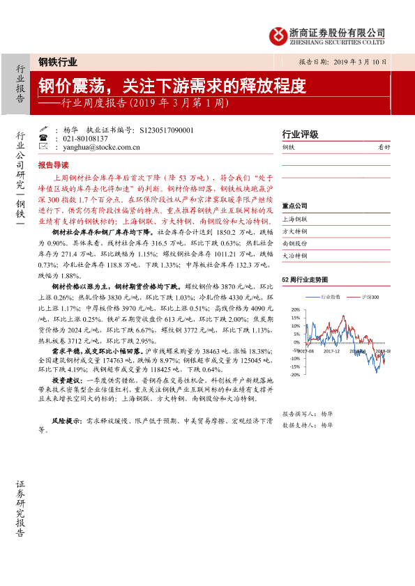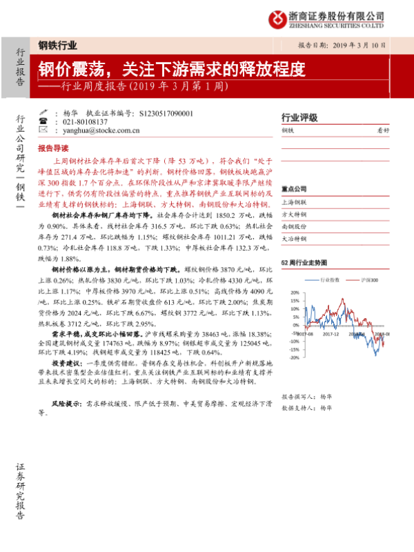 【浙商证券】【20190310】20190310-浙商证券-钢铁行业周度报告:钢价震荡,关注下游需求的释放程度-15页