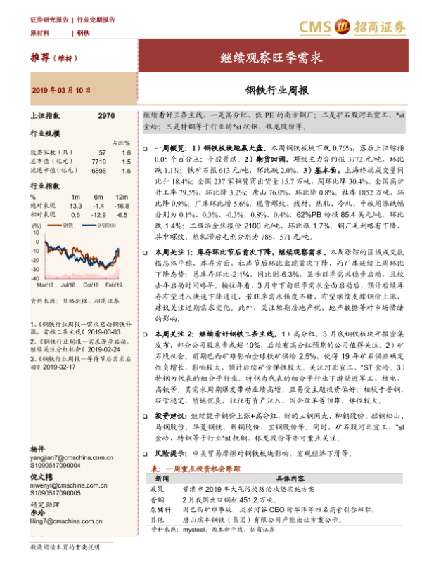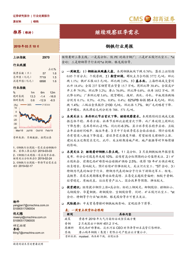 【海通证券】【20190310】20190310-招商证券-钢铁行业周报:继续观察旺季需求-12页