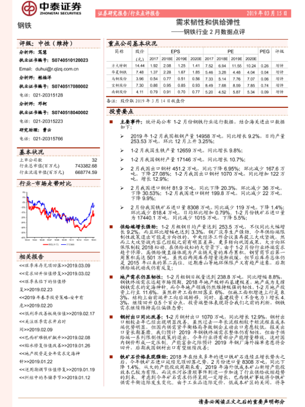 【中泰证券】【20190315】钢铁行业2月数据点评:需求韧性和供给弹性-5页