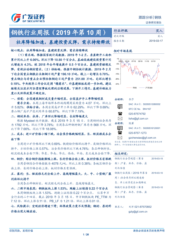 【广发证券】【20190317】2019年第10周钢铁行业周报:社库降幅加速,基建投资反弹,需求持续释放-26页