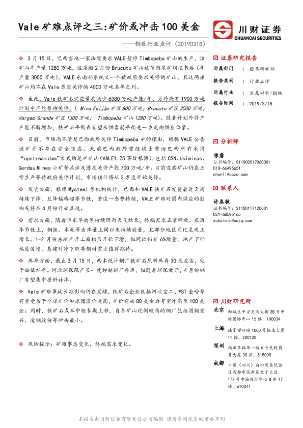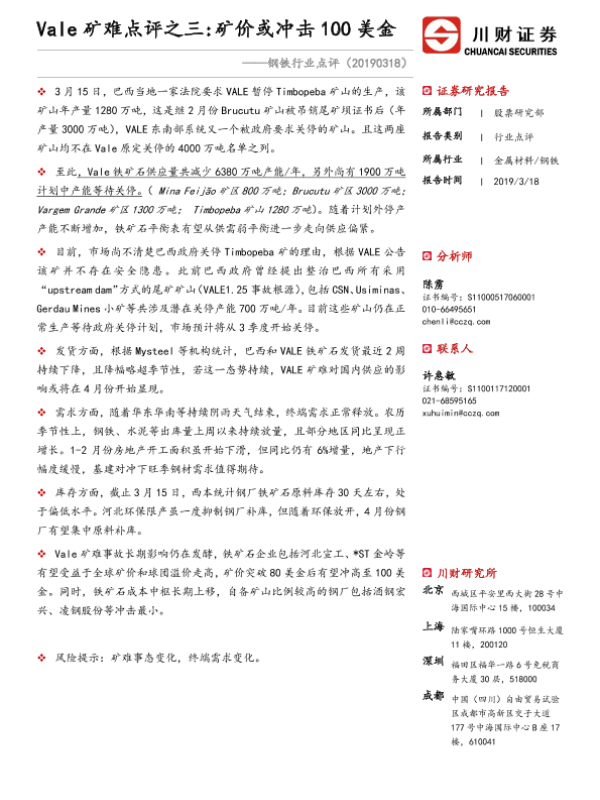 【川财证券】【20190318】Vale矿难点评之三:矿价或冲击100美金-2页