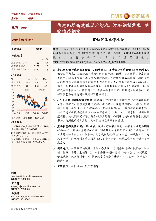 【海通证券】【20190319】钢铁行业点评报告:住建部提高建筑设计标准,增加钢筋需求,继续推荐钢铁-2页