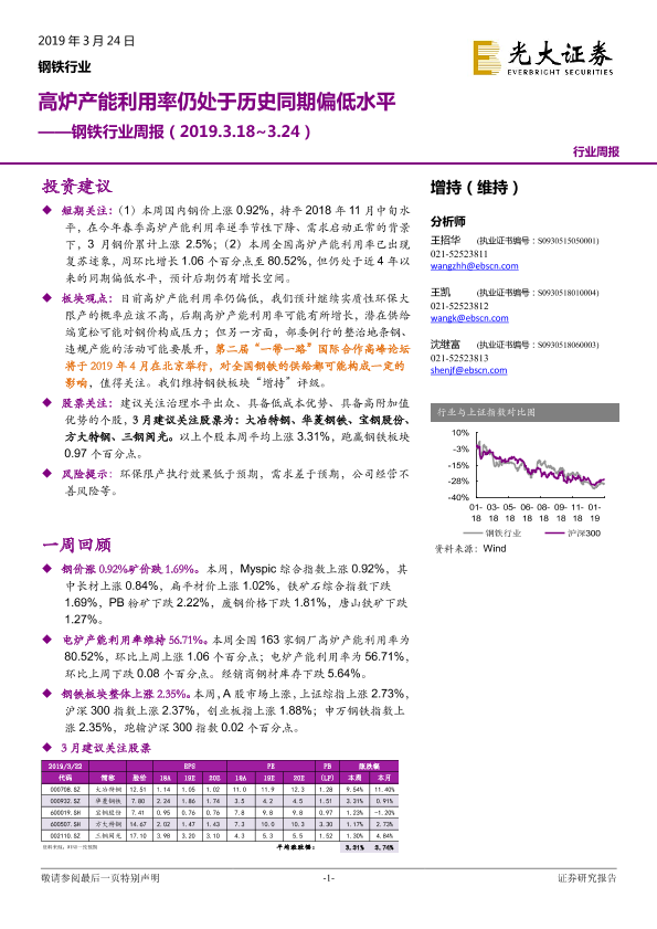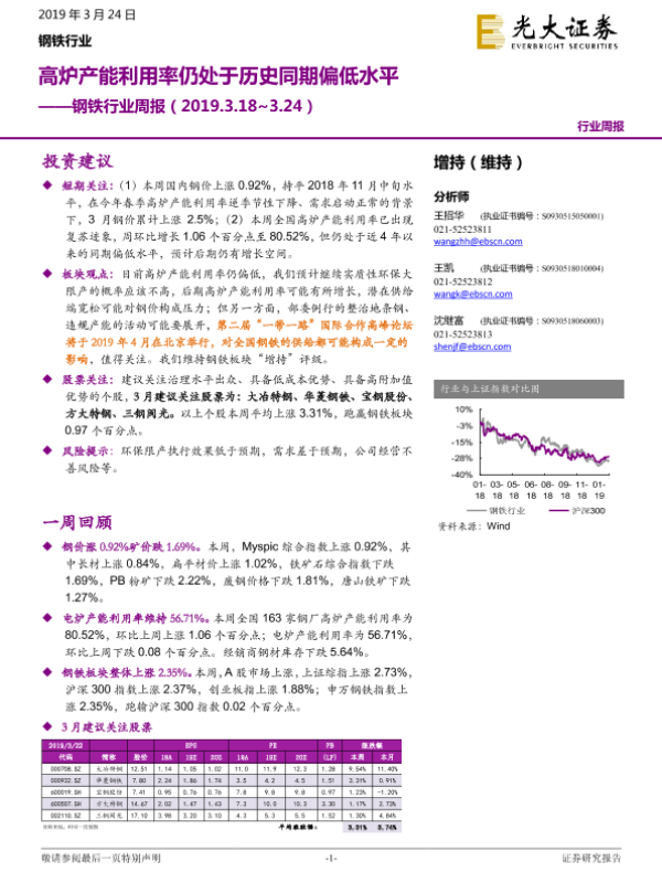 【光大证券】【20190324】20190324-光大证券-钢铁行业周报:高炉产能利用率仍处于历史同期偏低水平-10页