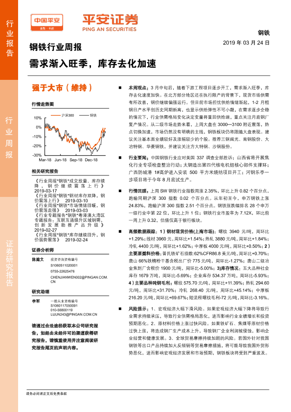 【平安证券】【20190324】钢铁行业周报:需求渐入旺季,库存去化加速-5页