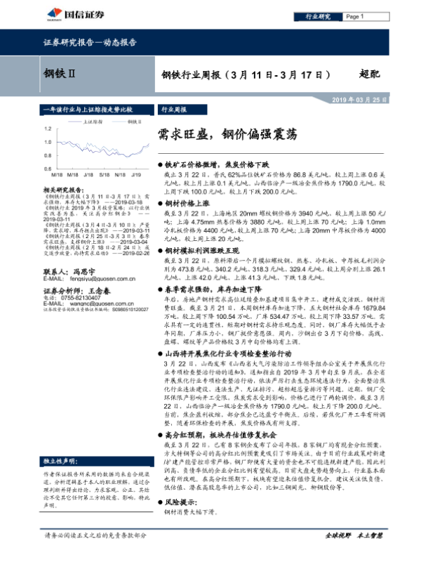 【国信证券】【20190325】20190325-国信证券-钢铁行业周报:需求旺盛,钢价偏强震荡-14页