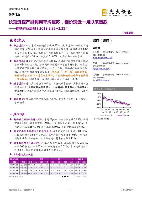 【光大证券】【20190331】20190331-光大证券-钢铁行业周报:长短流程产能利用率均复苏。钢价现近一月以来首跌-10页