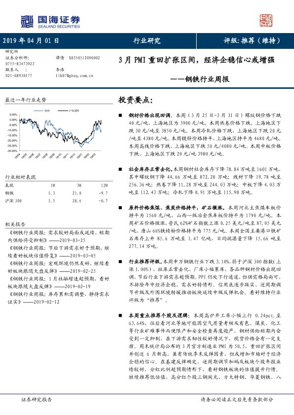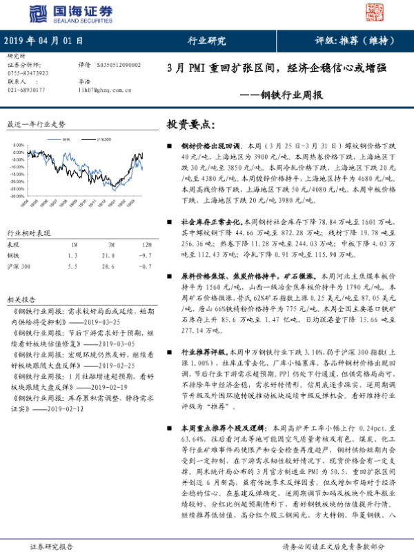 【国海证券】【20190401】20190401-国海证券-钢铁行业周报:3月PMI重回扩张区间,经济企稳信心或增强-14页