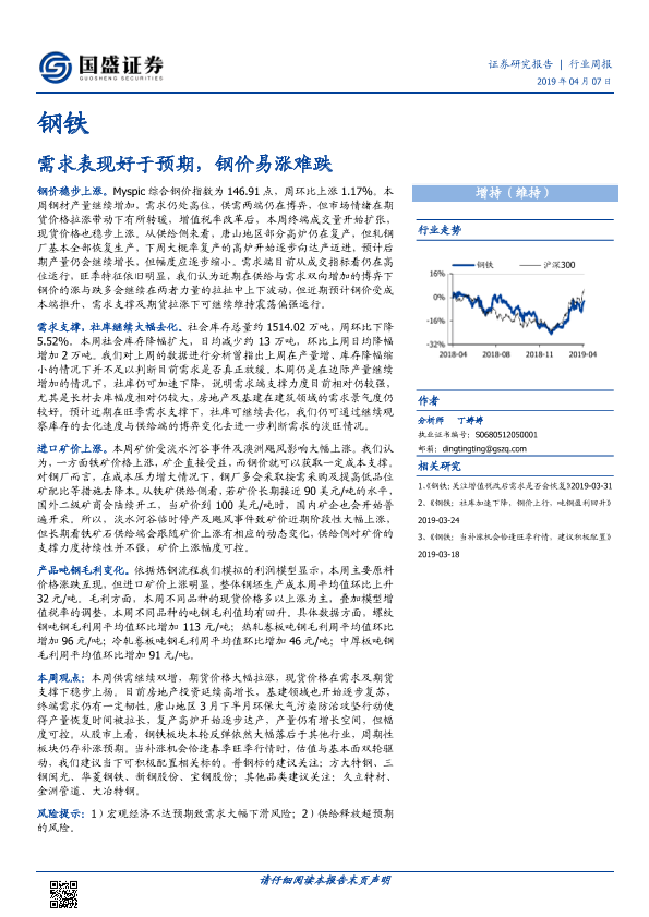【国盛证券】【20190407】钢铁行业周报:需求表现好于预期,钢价易涨难跌-10页