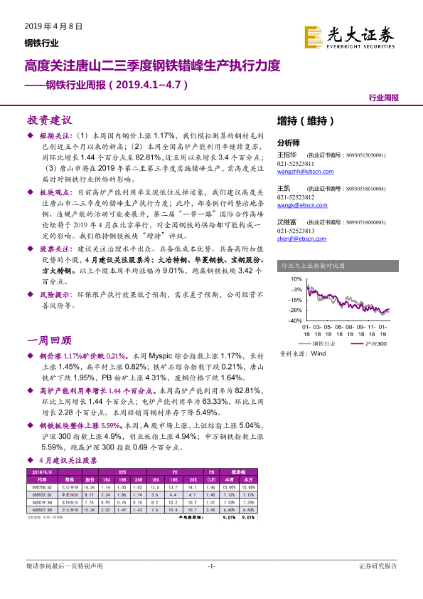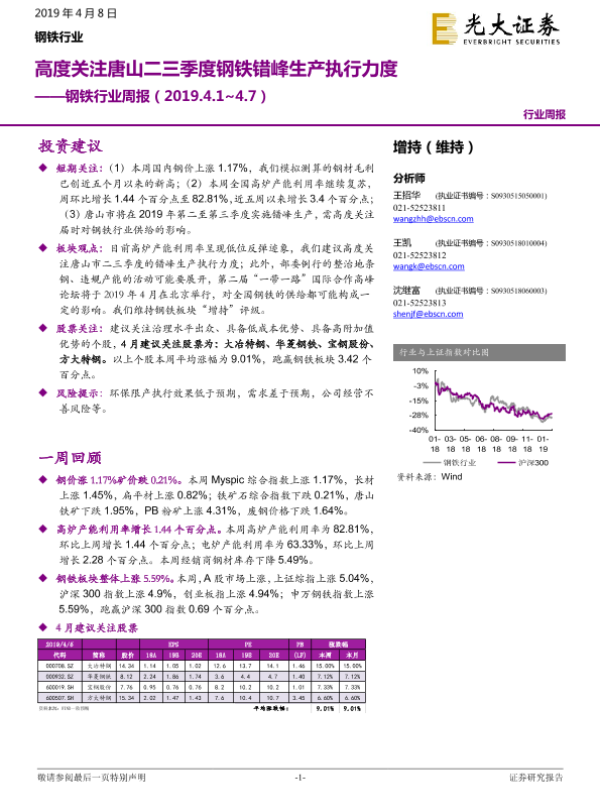 【光大证券】【20190408】20190408-光大证券-钢铁行业周报:高度关注唐山二三季度钢铁错峰生产执行力度-10页