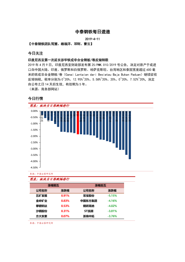 【中泰证券】【20190411】中泰钢铁每日速递-6页