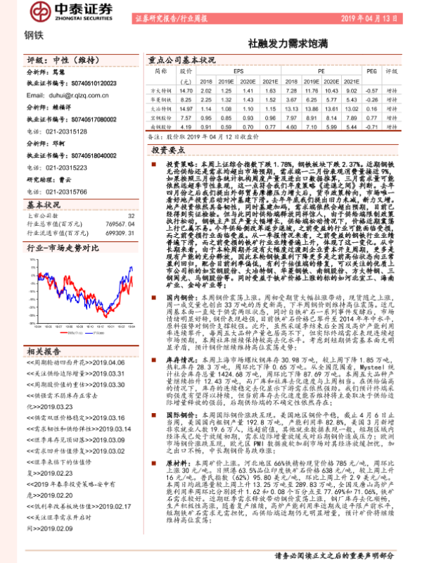 【中泰证券】【20190413】20190413-中泰证券-钢铁行业周报:社融发力需求饱满-15页
