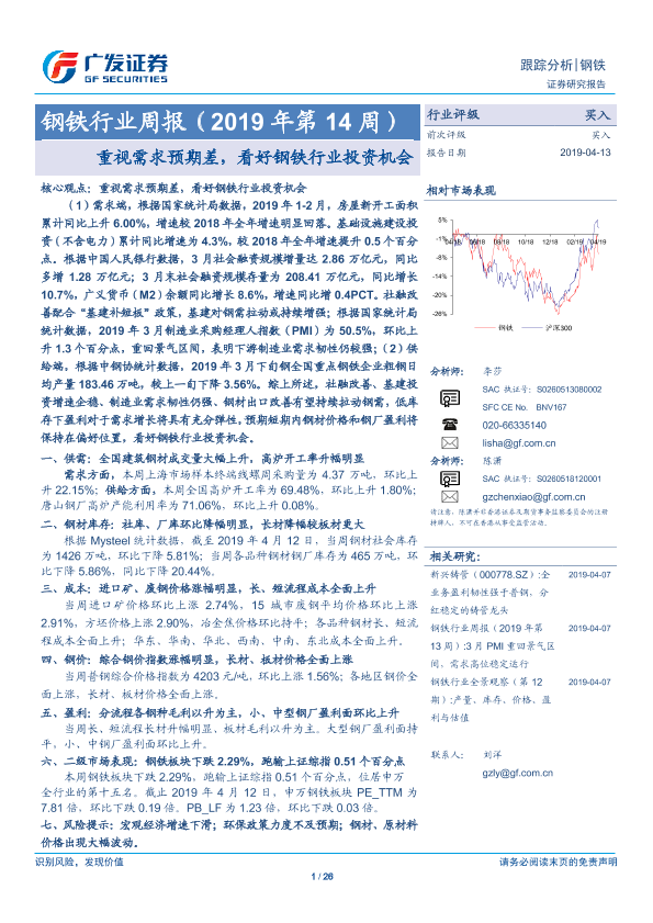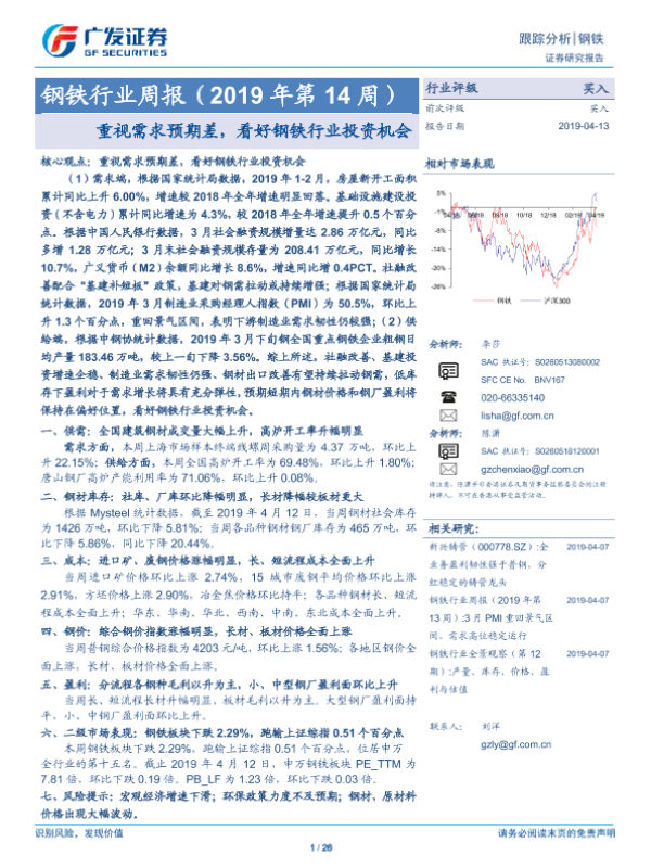 【广发证券】【20190413】2019年第14周钢铁行业周报:重视需求预期差,看好钢铁行业投资机会-26页