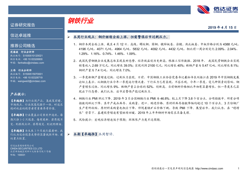 【信达证券】【20190415】20190415-信达证券-卓越推:钢铁行业-3页