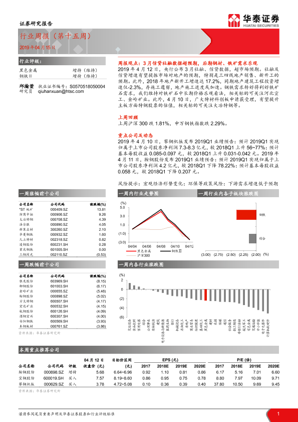 【华泰证券】【20190415】20190415-华泰证券-黑色金属行业周报(第十五周)-22页