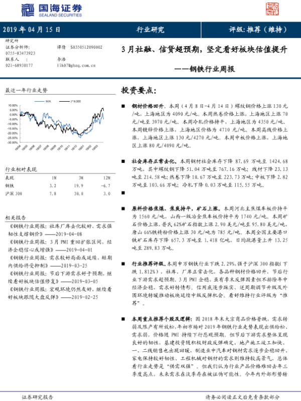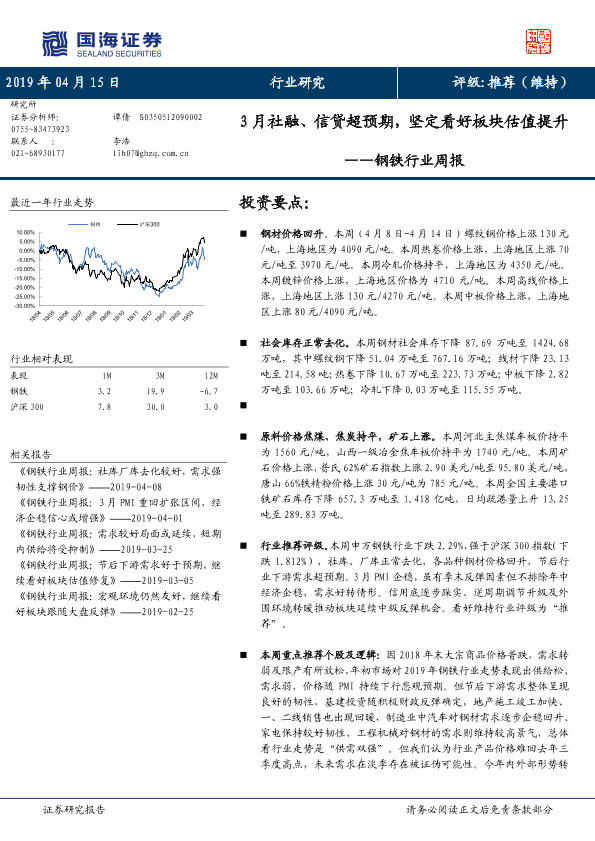 【国海证券】【20190415】20190415-国海证券-钢铁行业周报:3月社融、信贷超预期,坚定看好板块估值提升-14页