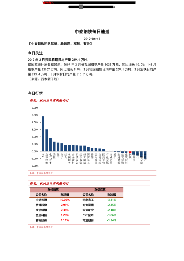 【中泰证券】【20190417】20190417-中泰证券-中泰钢铁每日速递-5页