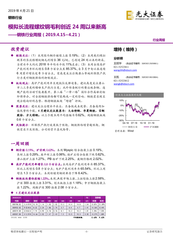 【光大证券】【20190421】20190421-光大证券-钢铁行业周报:模拟长流程螺纹钢毛利创近24周以来新高-10页