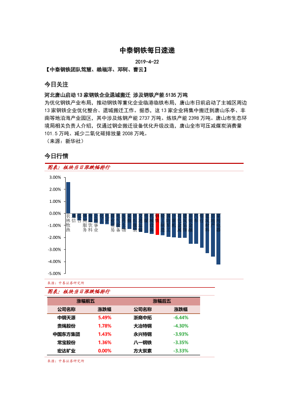 【中泰证券】【20190422】中泰钢铁每日速递-5页