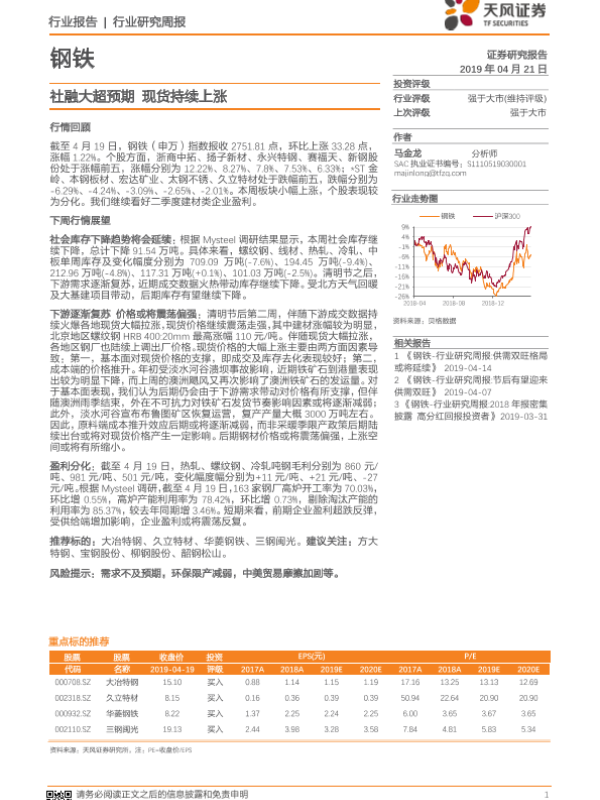【天风证券】【20190421】20190421-天风证券-钢铁行业研究周报:社融大超预期 现货持续上涨-14页