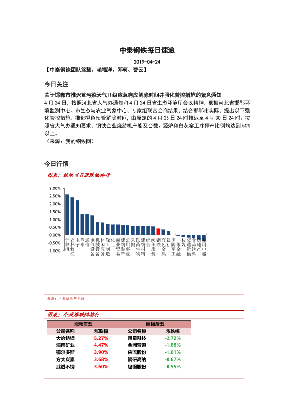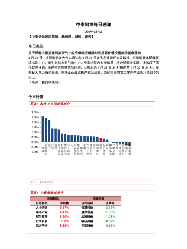 【中泰证券】【20190424】中泰钢铁每日速递-6页
