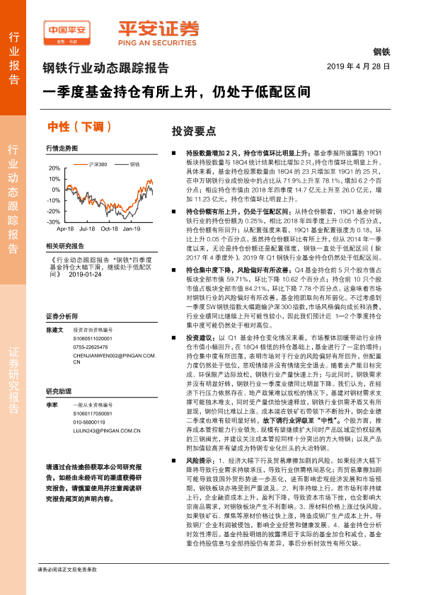 【平安证券】【20190428】20190428-平安证券-钢铁行业动态跟踪报告:一季度基金持仓有所上升,仍处于低配区间-8页