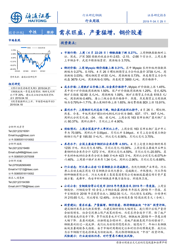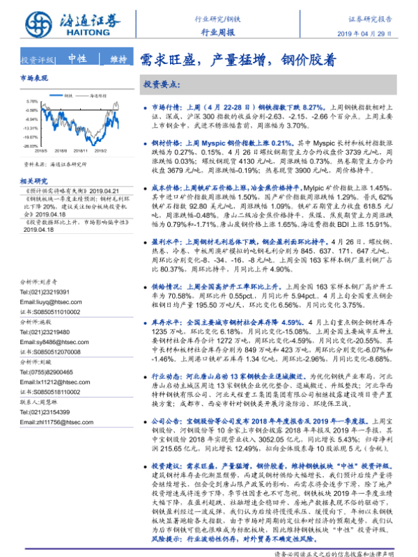 【海通证券】【20190429】20190429-海通证券-钢铁行业周报:需求旺盛,产量猛增, 钢价胶着-16页