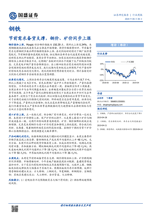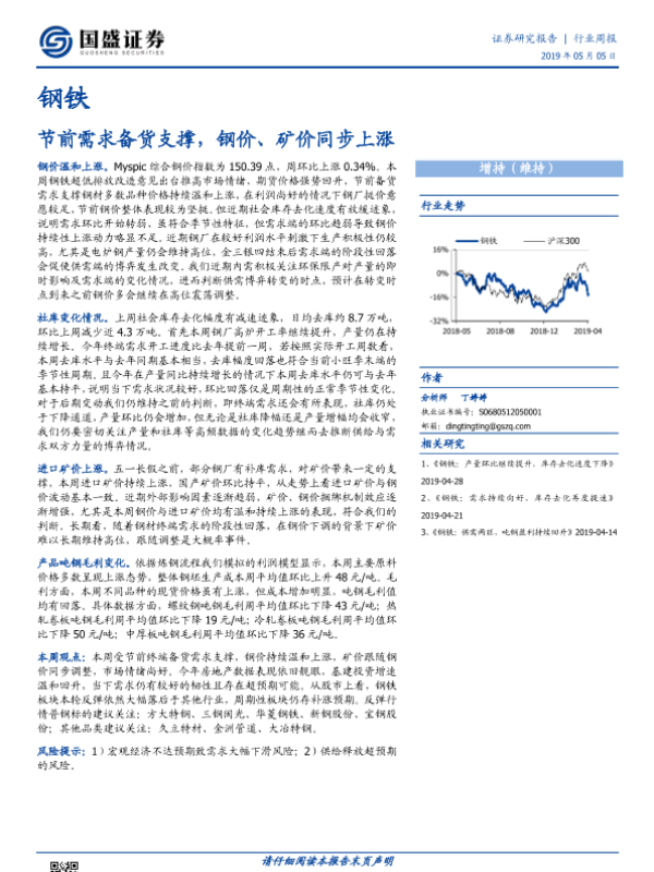 【国盛证券】【20190505】20190505-国盛证券-钢铁行业周报:节前需求备货支撑,钢价、矿价同步上涨-10页