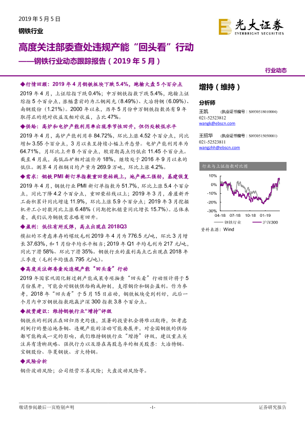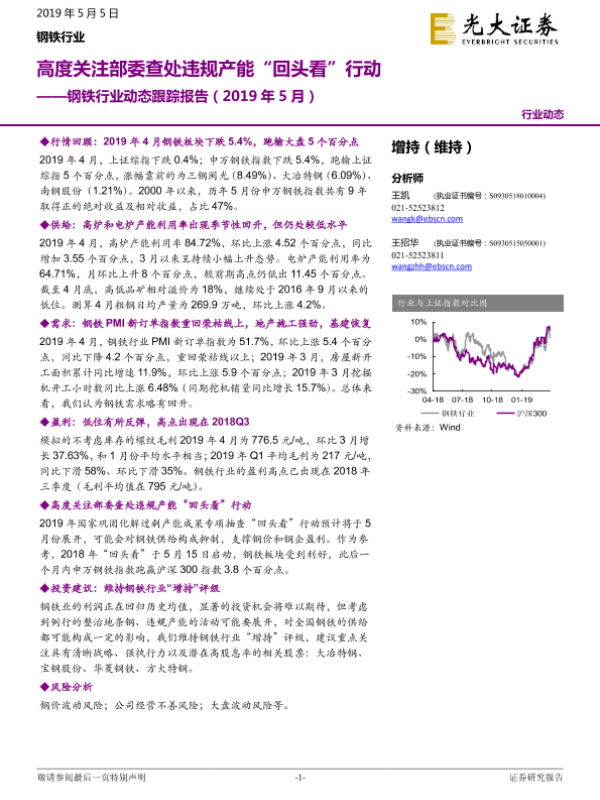 【光大证券】【20190505】2019年5月钢铁行业动态跟踪报告:高度关注部委查处违规产能“回头看”行动-17页