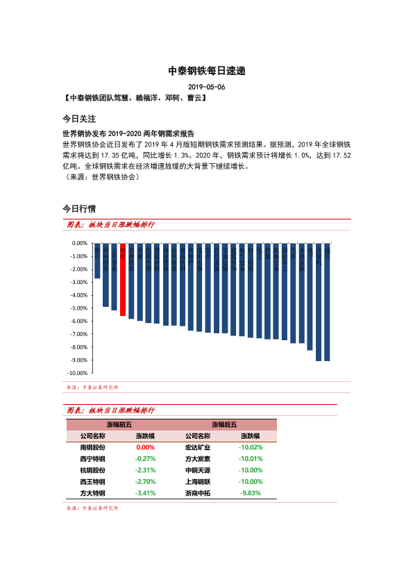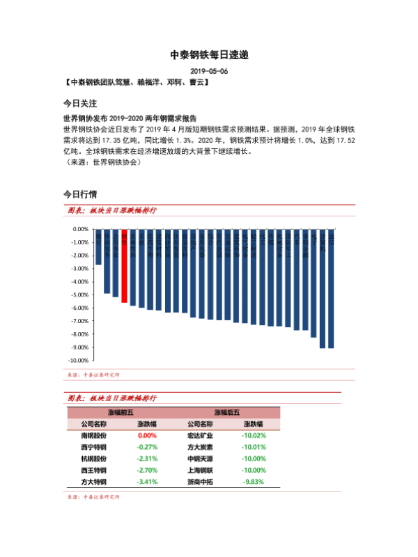 【中泰证券】【20190506】中泰钢铁每日速递-5页